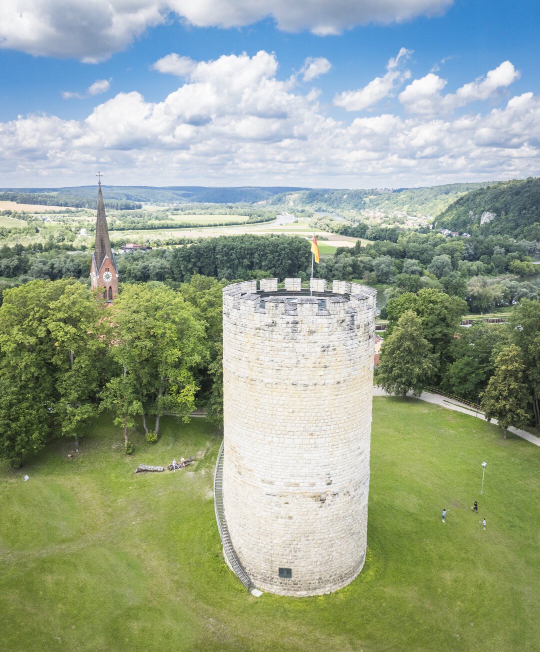 Doch auch außerhalb des Turms erwartet die Gäste ein Highlight: Der atemberaubende Blick vom Burgberg über Bad Abbach und das weite Donautal – ein Panorama, das in Erinnerung bleibt.